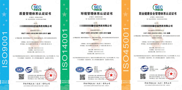 三體系認(rèn)證證書樣本 CNAS-IAF